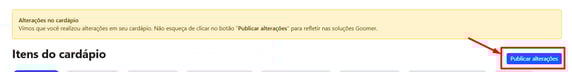 Observação: Talvez seja necessário publicar as alterações para que a mudança apareça no cardápio online.