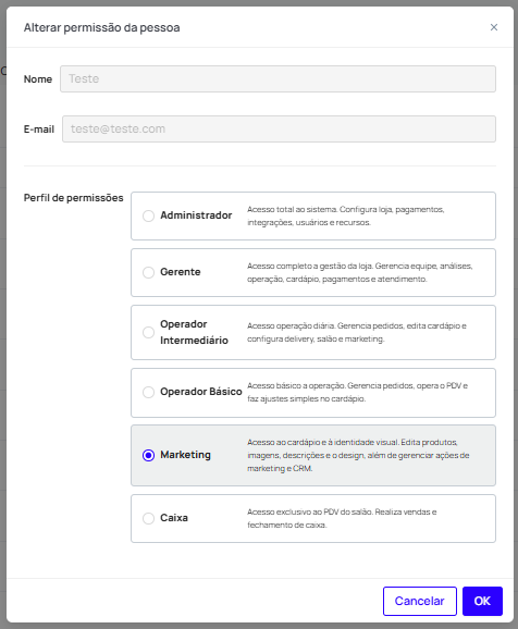 A mudança traz mais organização, controle e clareza sobre quem pode fazer o quê no sistema, tudo para deixar a rotina do seu restaurante ainda mais fluida.