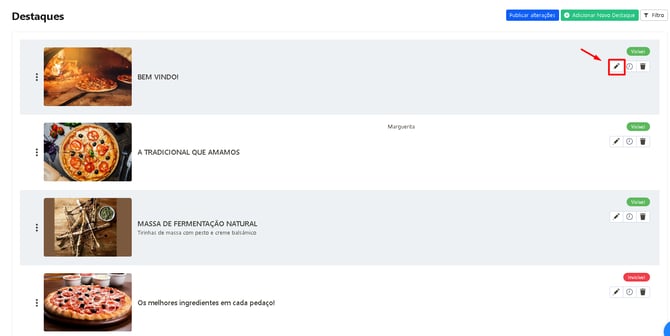 Clique em Editar no destaque desejado.