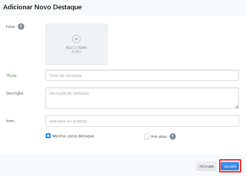 Cadastro, edição e exclusão de destaques