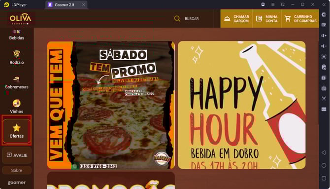 A oferta será exibida em destaque no cardápio, conforme o exemplo abaixo.