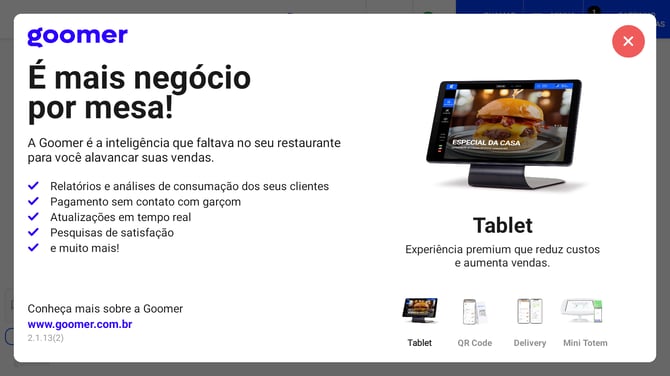 Verifique a Versão Goomer exibida no tablet e compare com a disponível no painel de controle. - Posso criar menus específicos para eventos?