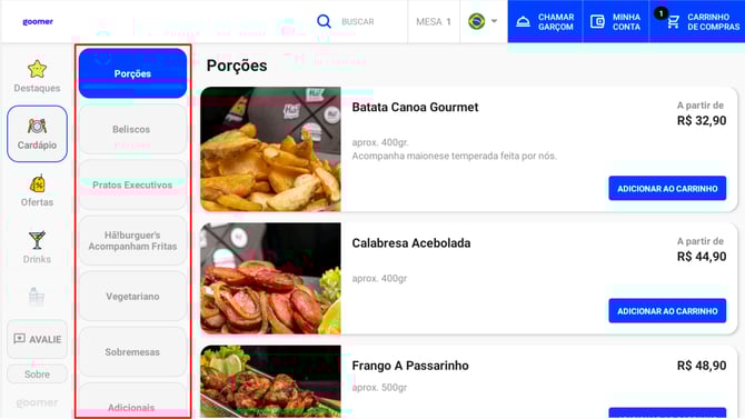 Conhecendo o cardápio goomer no tablet 2.0