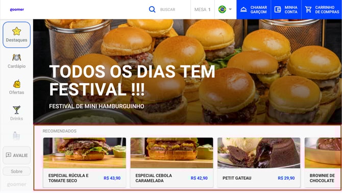 Espaço para indicar produtos sugeridos pelo estabelecimento.
