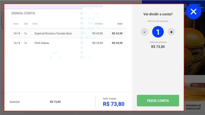 - Opção de dividir a conta.