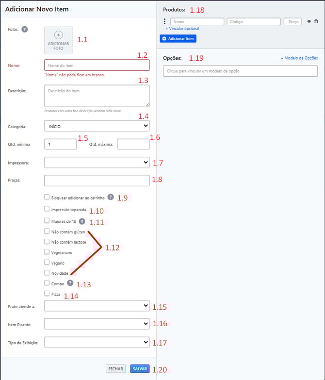 Selecione esta opção se o produto for proibido para menores de idade. A informação aparece no cardápio.