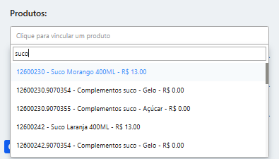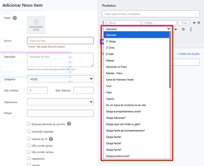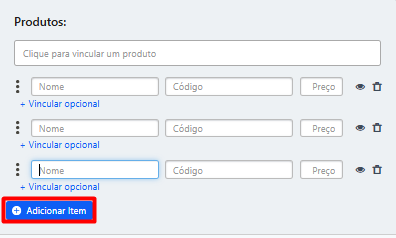 Em produtos específicos: selecione abaixo do produto desejado em + Vincular opcional.