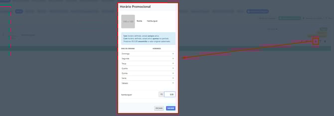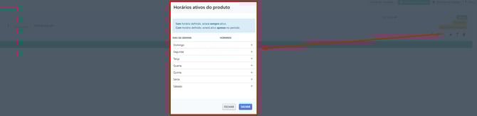 Configure os dias e horários em que o produto estará disponível para venda.