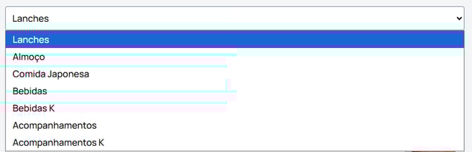 Use o seletor para escolher qual grupo de produtos deseja visualizar.