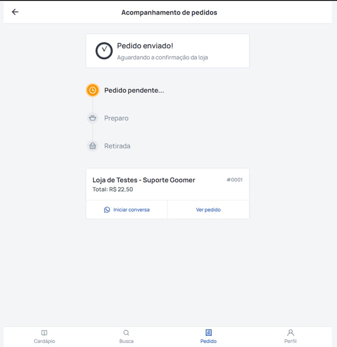 Acesse a área Pedido e inicie uma conversa pelo WhatsApp.