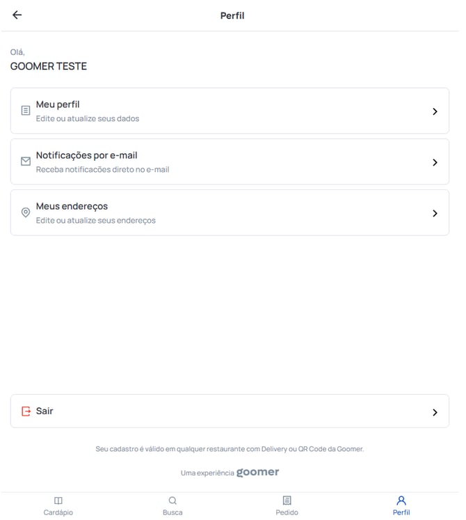 Navegando pelo delivery Goomer