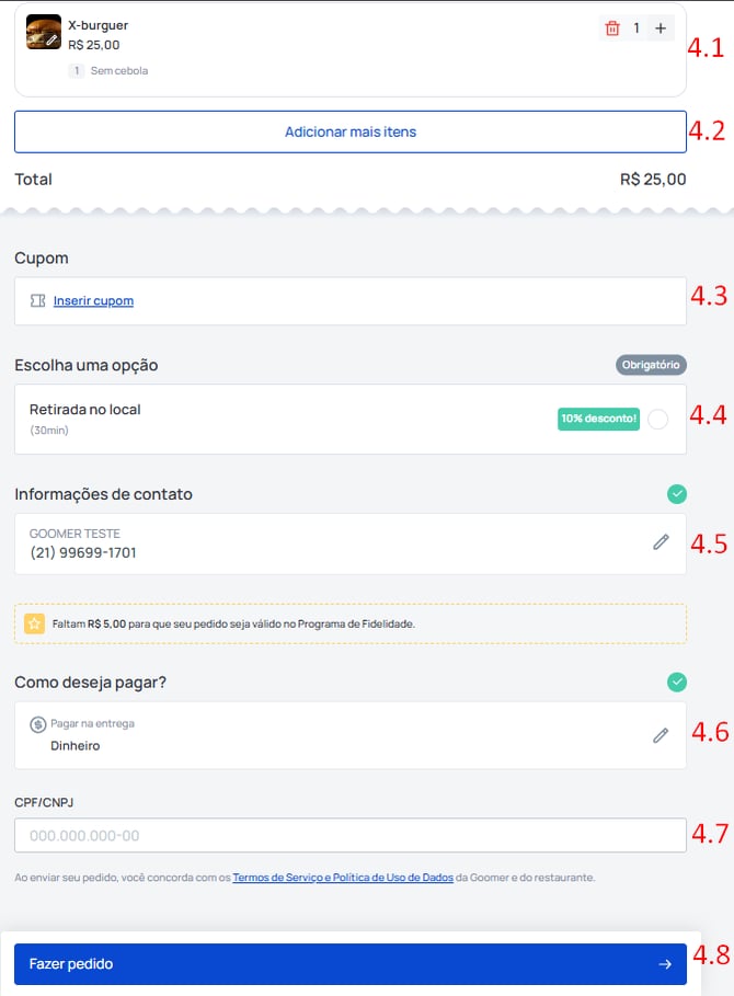 4.9 Finalizar pedido