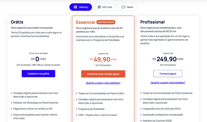 Os planos antigos da Goomer (Freemium , Essencial e Profissional) foram descontinuados e não estão mais disponíveis para novas ativações. Se você possui um plano ativo nessas versões, pode continuar utilizando normalmente até o fim da sua assinatura. Porém, após a expiração, somente os planos atuais estarão disponíveis para contratação.
